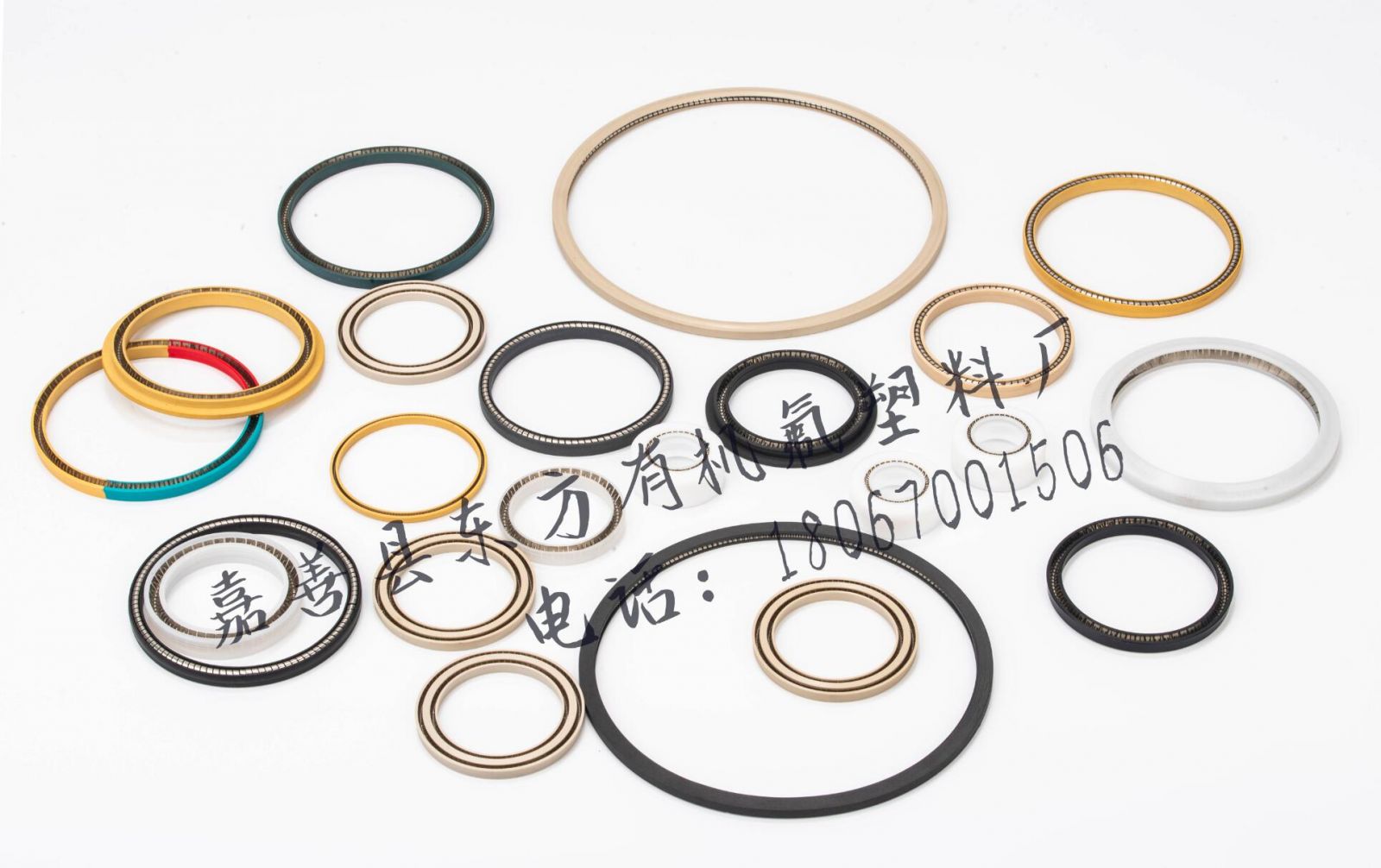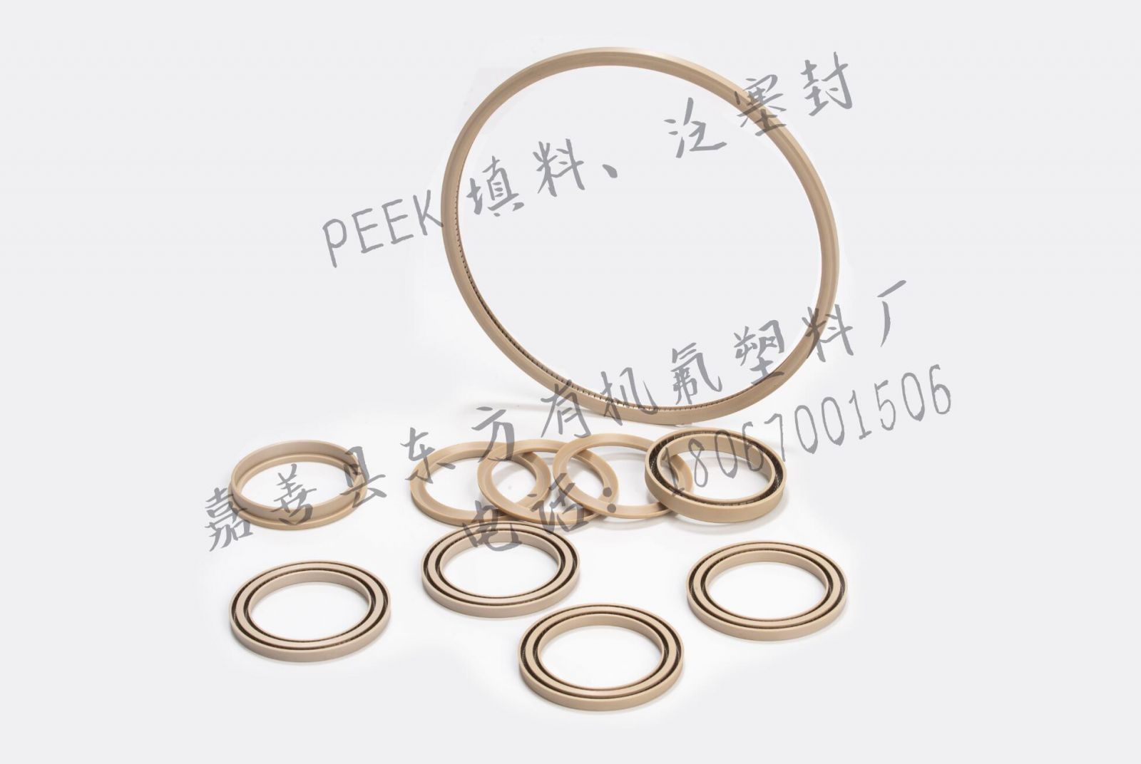 PTFE+玻纤:材质坚硬,具有长久的耐磨性能,耐高温。推荐用于高压液压应用中,在表面速度较快的条件下对软金属具有研磨左右。